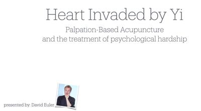 In this 2 hour lecture with video demonstrations, David Euler will illustrate the importance of diagnosing and treating the various forms of Yi filling the heart and obstructing the healing ability of the patient. This discussion on psychosomatic and somatopsychic illnesses is very practical and filled with treatment strategies based on palpation-based differential diagnosis. The videos show how (and where) to palpate and how to use the acupuncture points for best clinical results.